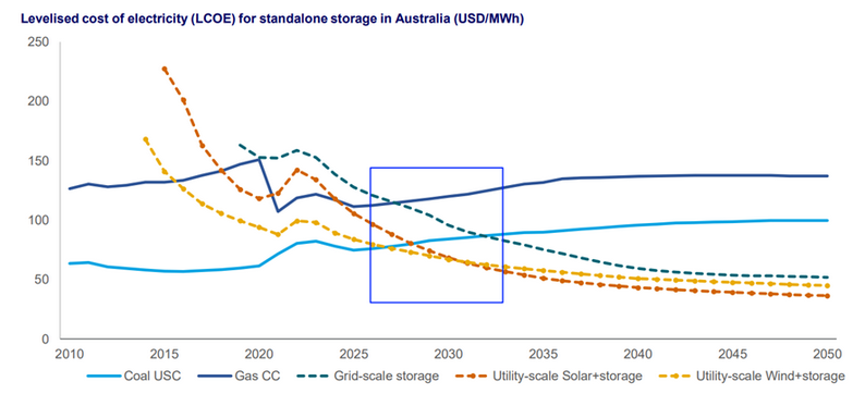 Currently, the level-of-energy cost (LCOE) of grid-scale energy storage systems deployed independently is still high compared with other dispatchable generation facilities, but according to Wood Mackenzie's survey, by 2032, the cost of energy storage systems will be greatly reduced. The competitiveness of natural gas power generation.